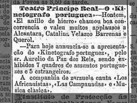 O “Kinetographo Portuguez” de Aurélio Paz dos Reis exibia, assim, a primeira sessão portuguesa de cinema, com filmes portugueses, filmados por um português e, este facto extraordinário, levado a efeito por um portuense, marca o nascimento do cinema em Portugal, cujo início mundial, tinha tido lugar, apenas, alguns meses antes, com os irmãos Lumíère, em Paris.