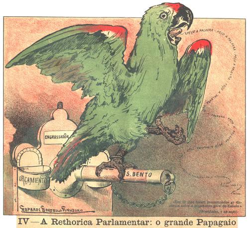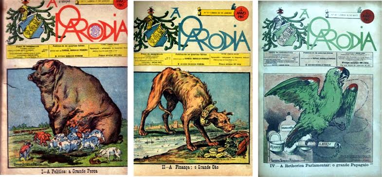 Dentro das grandes alegorias presentes nos seus desenhos caricaturais, encontramos a política, representada por uma porca, “a grande porca”, com muitas tetas, onde todos mamam…, as finanças, simbolizada por um cão esfaimado, “o grande cão”, que tudo “tira” ao povo… a “galinha choca”, personificando a economia… a retórica parlamentar representada pela figura de um papagaio… a “grande toupeira” que tudo vai minando é o símbolo da reacção, ou seja, os que estão contra tudo e todos…