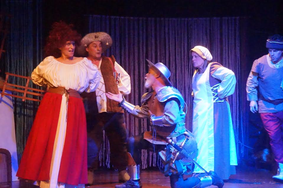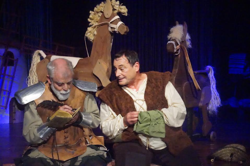 Para contar esta peça de aventuras e desventuras do cavaleiro andantes, Dom Quixote de la Mancha, e do seu fiel escudeiro, Sancho Pança, subiu ao palco um elenco constituído pelos atores: António Ferreira, Gonçalo Boavida, João Barge, João Martins, José Ferreira, Juliana Almeida, Laura Poças, Luís Ribeiro, Manuel Ricardo, Margarida Martins, Tiago Amaral e a própria autora do texto, Teresa Leite.