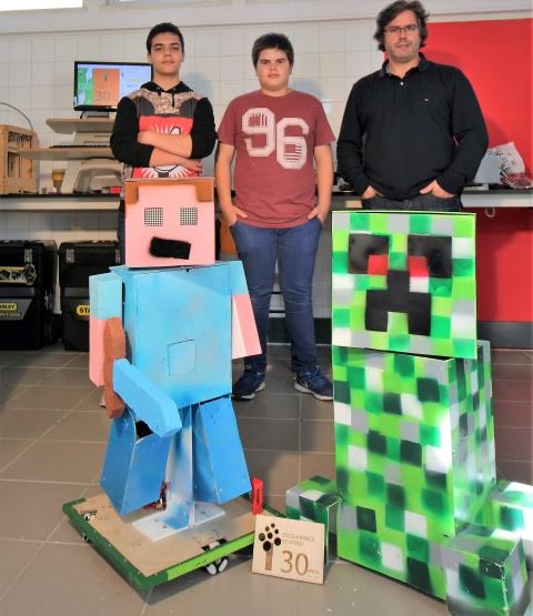 Este ano, o robô idealizado pelos alunos teve por base o popular jogo Minecraft Education. O jogo e personagem virtuais “ganharam vida”. Todos os visitantes queriam tirar uma “selfie”. Para além das fotos, os visitantes mostravam-se muito curiosos e queriam saber como tudo funcionava. Os alunos mostraram com entusiasmo o trabalho desenvolvido e explicaram os pormenores e as soluções inovadoras que desenvolveram. Para além dos robots, os alunos foram também o centro das atenções na “escrita 3D”. Uma caneta com um sistema de aquecimento que atua sobre o plástico e que sai depois fundido na parte frontal, mereceu largas filas de espera para levarem o nome manuscrito em 3D.