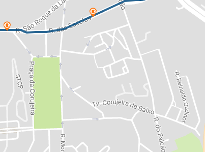Tal como é possível verificar na imagem acima, a linha 401 agora segue diretamente, pela rua das escolas, para o Falcão, retomando depois o percurso antigo.