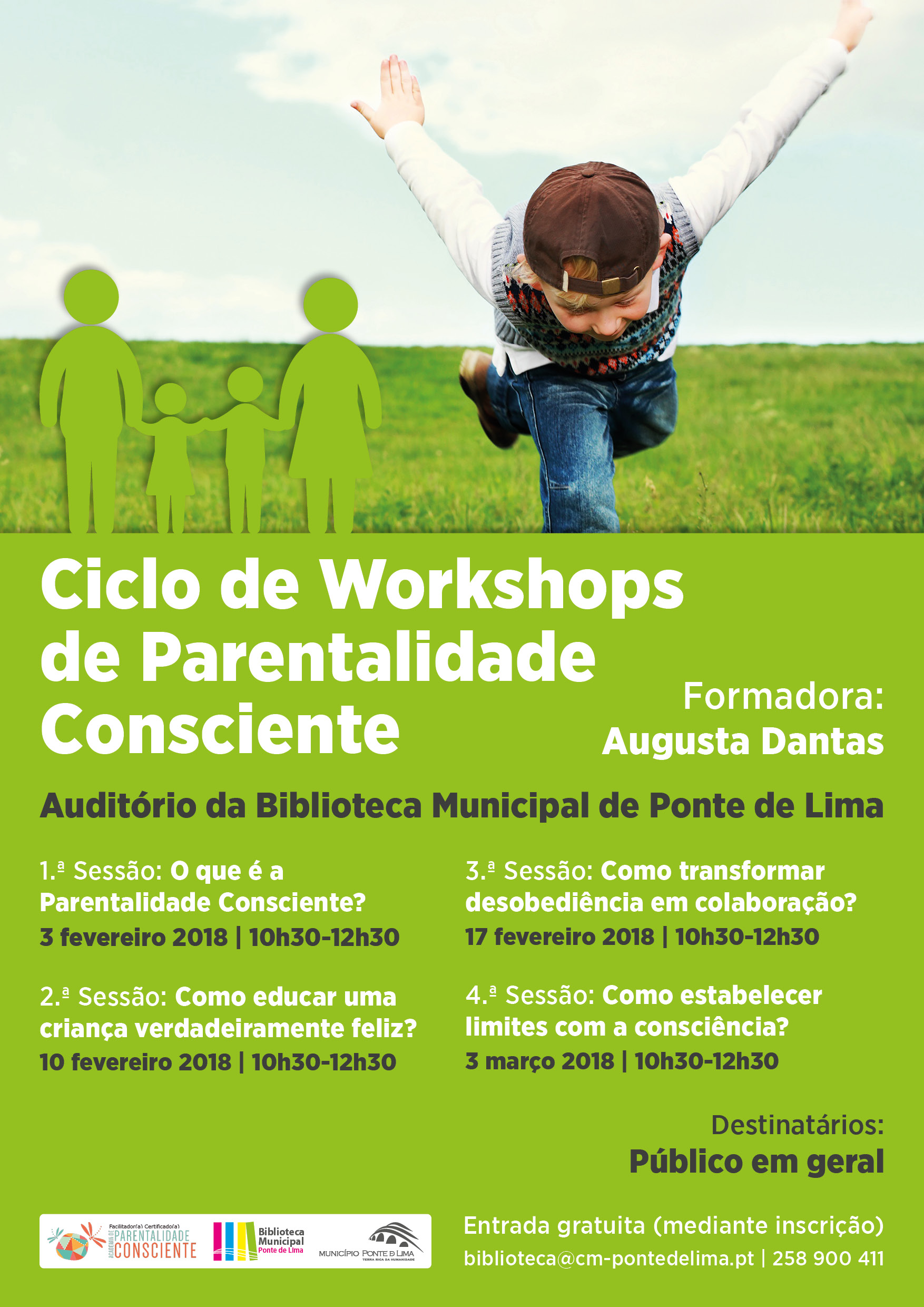 O Município de Ponte de Lima vai promover Workshops de Parentalidade Consciente direcionadas para público em geral, de forma gratuita, durante o mês de fevereiro, no auditório da Biblioteca Municipal. Tratam-se de ações que visam criar a possibilidade de se explorar temáticas relacionadas com a educação, parentalidade e comunicação consciente de forma a contribuir para a aquisição de novas ferramentas, conhecimentos e estratégias que aumentem a colaboração e autonomia plena e consciente.