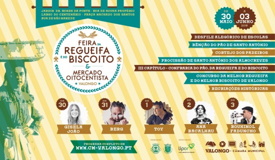 Com presença garantida das principais padarias e biscoitarias do concelho de Valongo, o evento terá animação diária, com fabrico ao vivo, recriações históricas, exposições, cortejos, teatro, danças, passeios a cavalo e grandes espetáculos. Gisela João, Berg, Toy, Ana Bacalhau e Rouxinol Faduncho são as cabeças de cartaz de edição de 2018, que foi alargada para 5 dias.