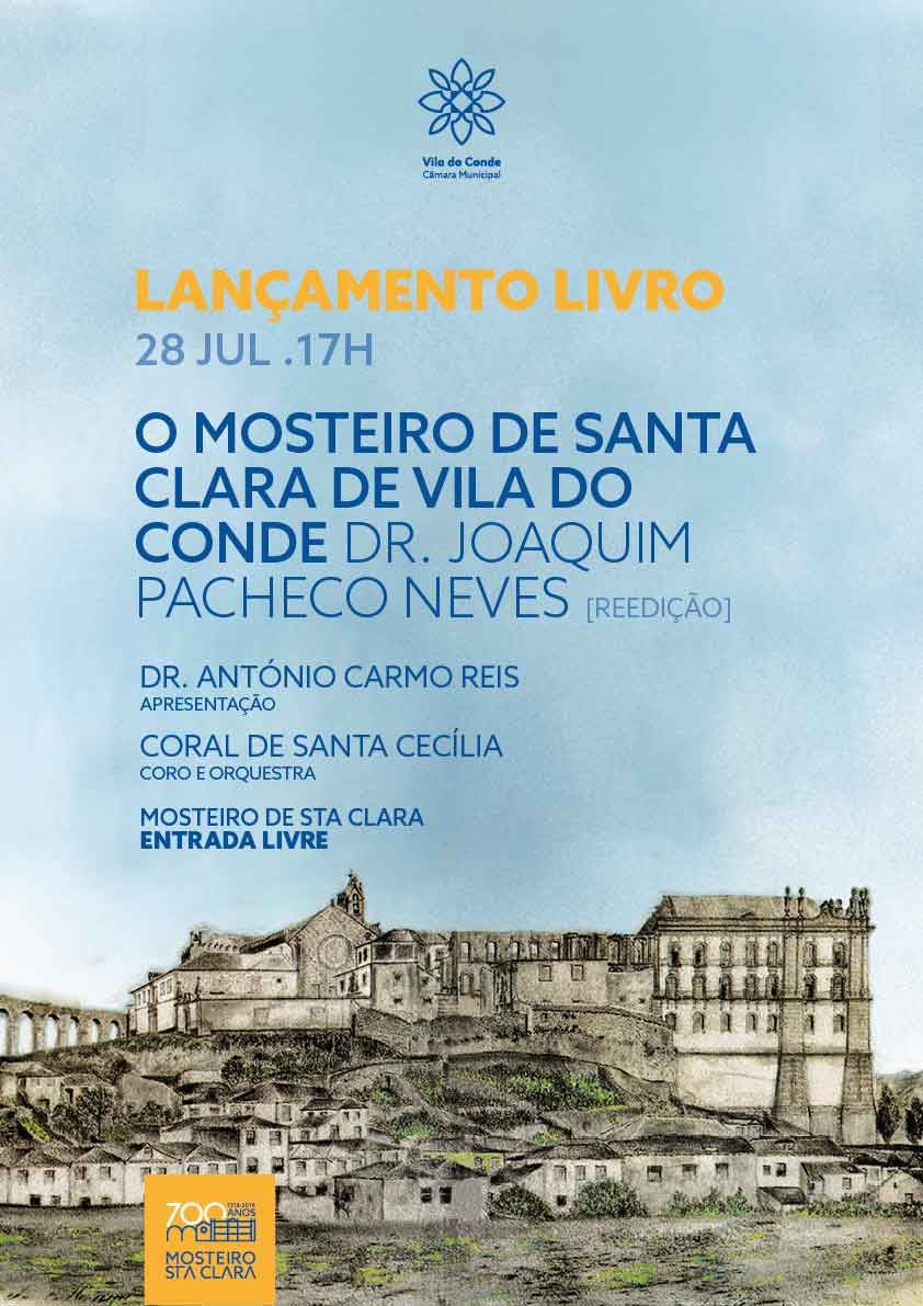Este sábado, às 17h, a Câmara Municipal reedita o livro de Joaquim Pacheco Neves intitulado “O Mosteiro de Santa Clara de Vila do Conde”. O palco para o lançamento de mais uma edição desta obra será precisamente o Mosteiro de Santa Clara, inserindo-se no programa de evocação dos 700 anos da fundação do Mosteiro.