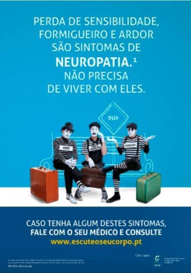 Lançada com o apoio da Associação Portuguesa de Medicina Geral e Familiar (APMGF), a campanha apresenta-se com uma mensagem simples que aponta, de uma forma clara e direta, para as principais manifestações da neuropatia: a perda de sensibilidade, o formigueiro e o ardor, sintomas que afetam, sobretudo, o sistema nervoso periférico, ou seja os nervos dos braços e das pernas.