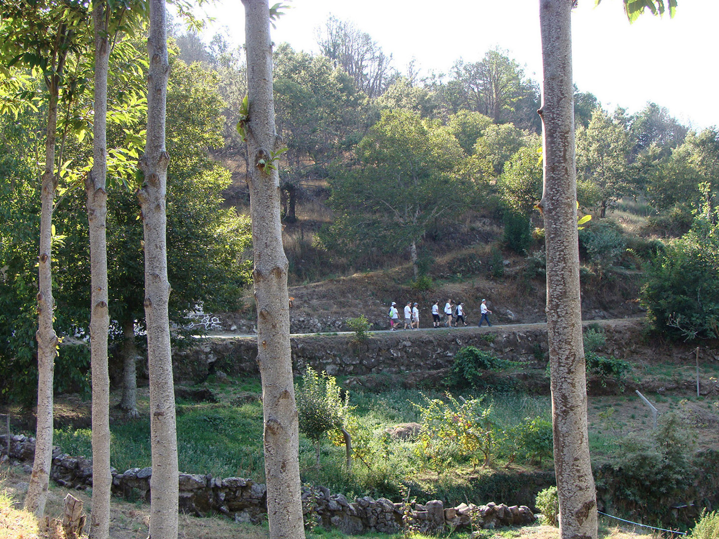 São mais de seis quilómetros de sobe e desce por estradões, estrada, calçadas e antigos caminhos de cabras. Os pequenos pontos habitacionais são lugar de pausa para “matar a sede” nas velhinhas fontes, com a água fresca e saborosa.