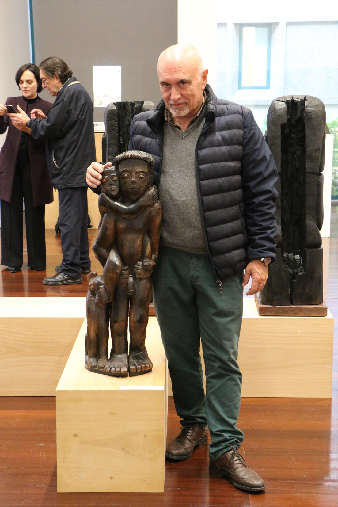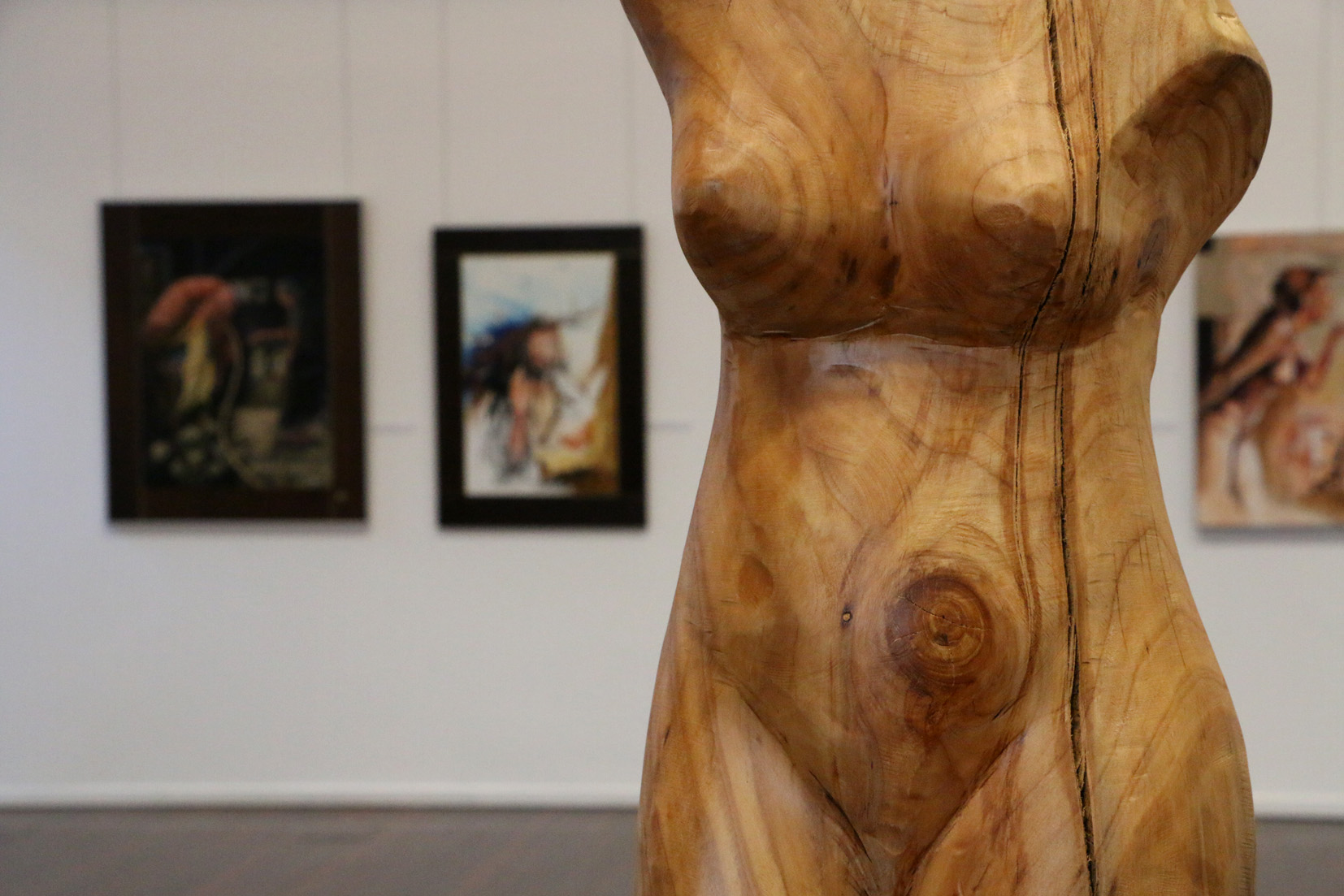 A escultura em madeira ocupa o centro da sala. Fernando Barros entalhou substantivos da afetividade e sensualidade, tendo como expoente máximo a figura humana. Cada peça é obra única. Não há colagens de secções. Toda a obra remete para um processo de entalhamento num só bloco de madeira.