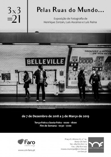 A rua como palco da objetiva dos fotógrafos, Henrique Zorzan, Luís Ascenso e Luís Reina. O Museu Municipal de Faro irá acolher esta mostra de fotografia contemporânea de 7 de Dezembro do corrente ano até ao dia 3 de Março de 2019.