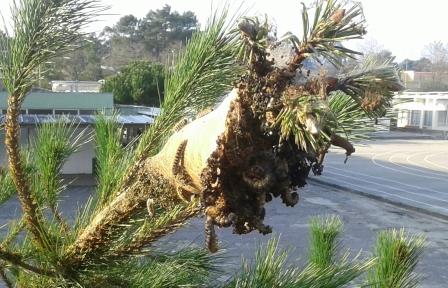 Nesta relação da comunidade escolar desperta para intervir preventivamente, tem sido possível observar de forma surpreendente este ano, uma maior presença de ninhos, o que significará, na ausência de medidas minimamente eficientes e coordenadas de destruição de ninhos, uma ainda maior invasão e reprodução da Lagarta do Pinheiro.