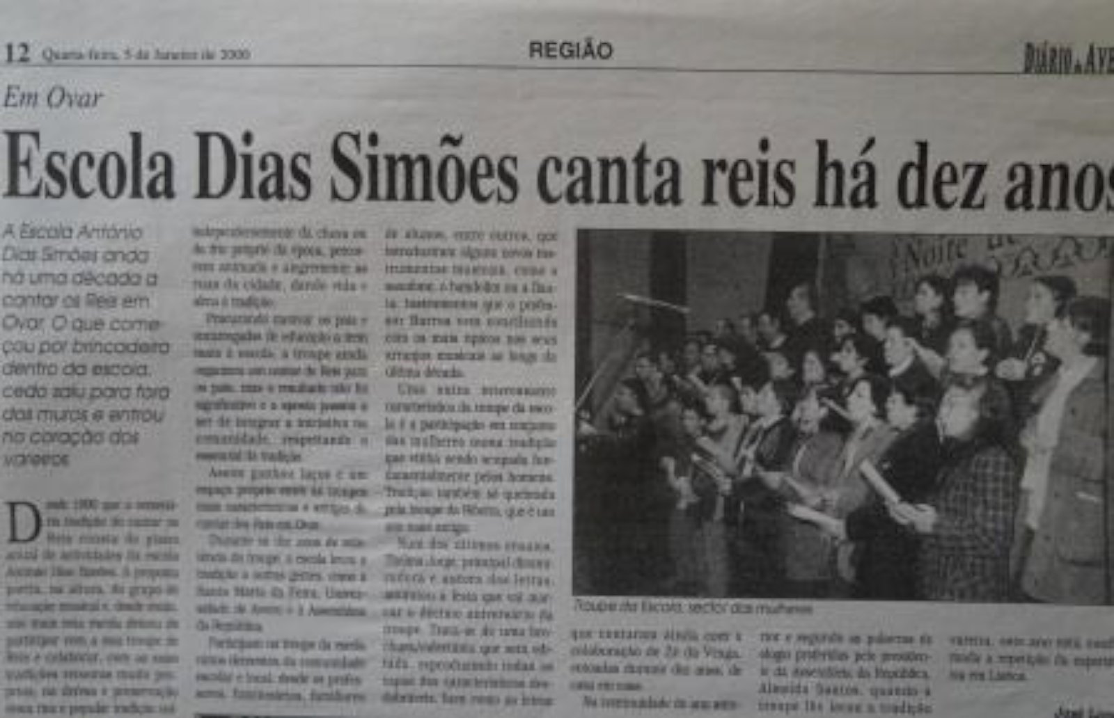 Do lote de Troupes de Reis que se consolidaram e chegaram aos dias de hoje como elementos fundamentais deste património cultural, destacou-se pelos contributos na renovação e afirmação da tradição a Troupe de Reis da Escola EB 2,3 António Dias Simões, que foram “Novos embaixadores reiseiros” (J.O., 08/01/1999) ao deslocar-se à Assembleia da República no mesmo dia em que a JOC-LOC cantou para o então Primeiro-ministro António Guterres, “Reis na Capital” (J.O., 08/01/1999). Mas a “Troupe de escola de Ovar há 10 anos a cantar os Reis” (J.N./p.l., 29/12/1999), acabaria por ficar pelo caminho.