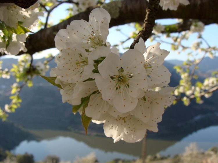 O mês de Março renova o cenário das encostas de Montemuro. É o preenchimento de um novo colorido, de um manto branco tão delicado onde qualquer olhar mais desatento fica rendido. Nestas terras de D. Egas tem um ex-libris, a cereja, um fruto tão pequeno, mas com simbologia do tamanho de um monumento. No despertar de cada Primavera, Resende acorda num extraordinário excesso de Natureza, são imagens repletas de unicidade como se de uma obra de arte se tratasse. Do centro da flor, ponteada de ouro, as pétalas assemelham-se a vestidos de noiva tão simples quanto luxuosos e brilham o lustro amarrotado no esplendor da singularidade do branco. Em cada estado, em cada ruga de maturidade, a flor mantém uma beleza incomparável. Perde o belo vestido branco, mas continua bela, ganha outras formas e outros tons, mas preserva a autenticidade na sua singeleza.