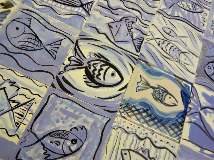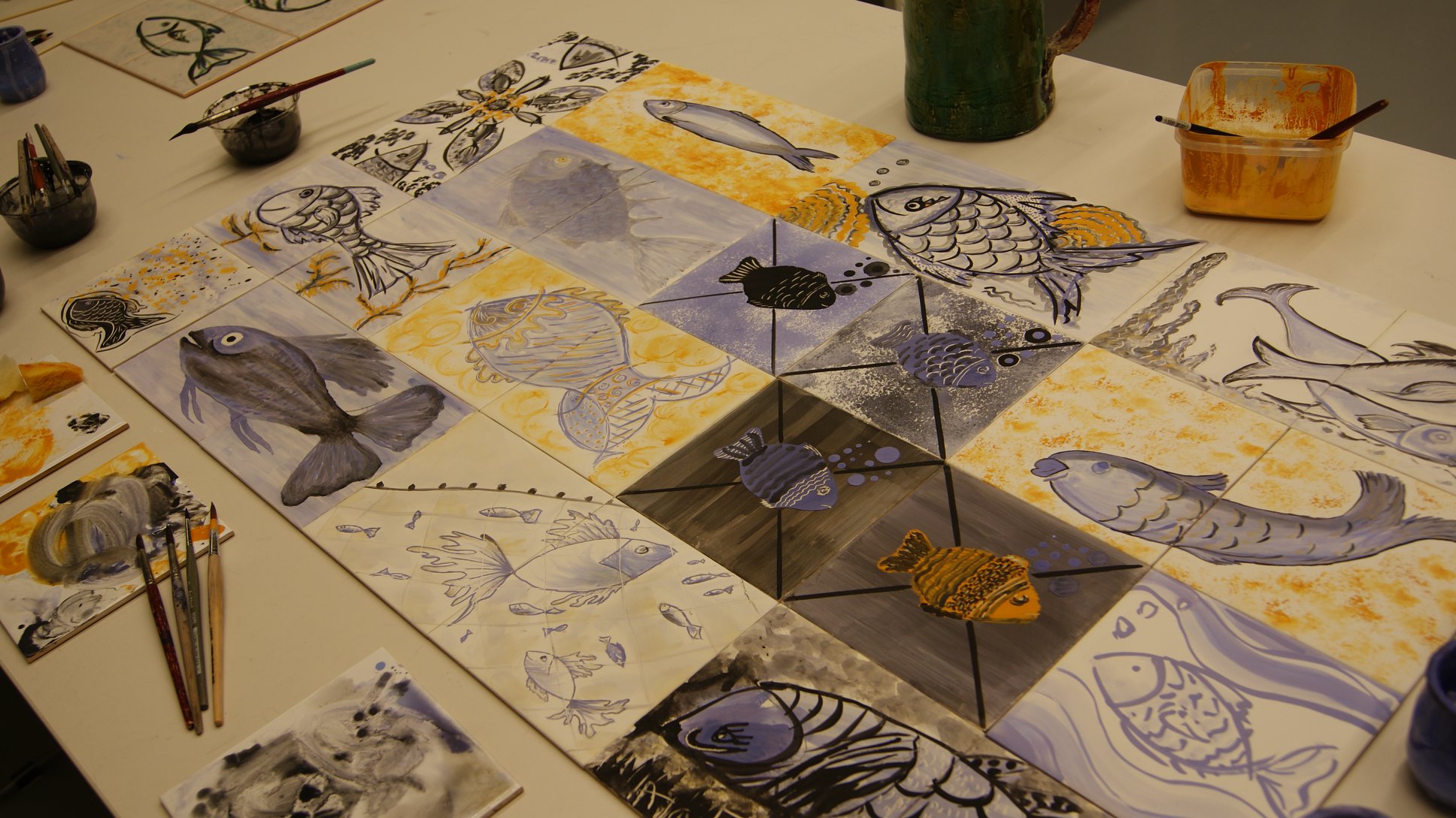 Os grupos de participantes nas várias atividades no âmbito do Maio do Azulejo tiveram ainda oportunidade de participarem nas oficinas de pintura em Azulejo na Escola de Artes e Ofícios, cujo objetivo proposto foi a produção de painel em Azulejo sob a temática “Caldeirada de Peixes”, segundo o imaginário criado por Jorge Barradas e a temática marítima explorada no painel “Cantigas do Mar”, que presente no Palácio da Justiça de Ovar, como um dos pontos do roteiro de arte pública que o património azulejar da cidade proporciona a quem visita Ovar.