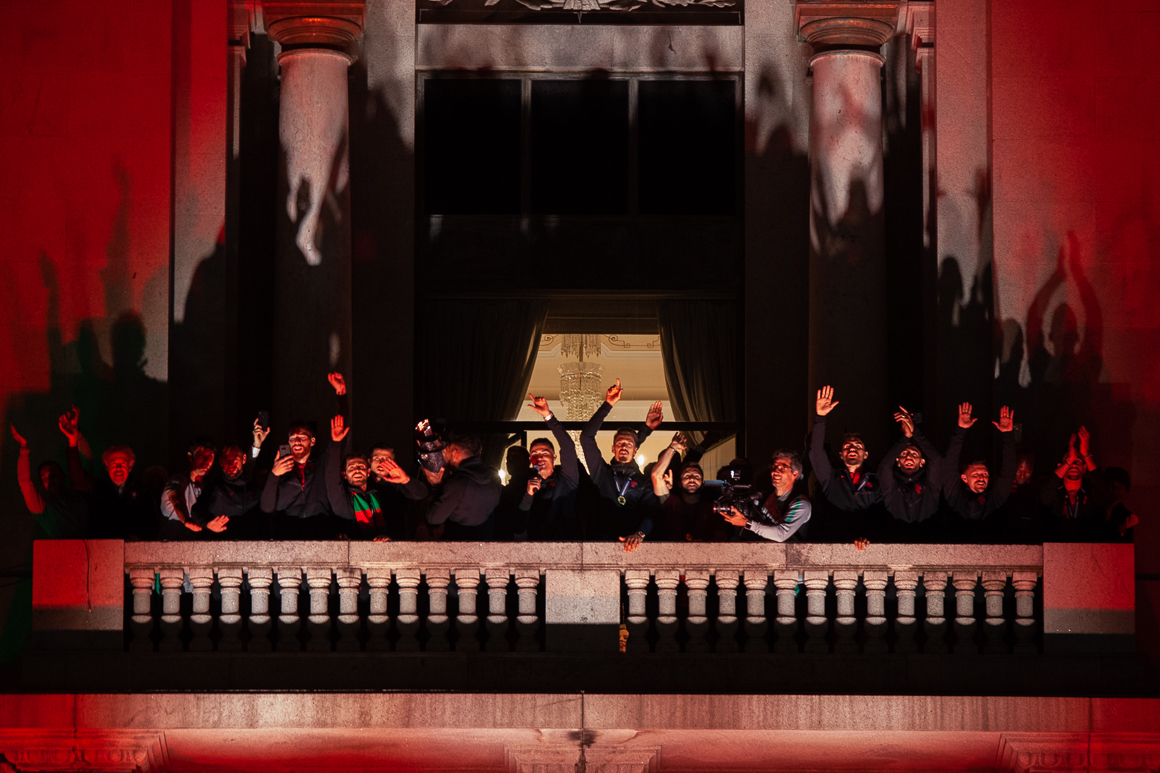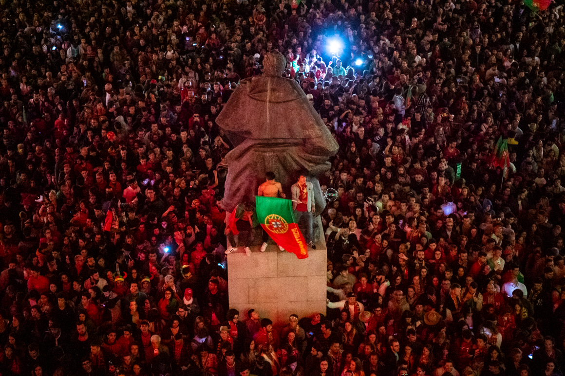 À varanda da Câmara do Porto, o melhor jogador do Mundo, disse: “É a primeira vez nos Aliados e tenho de dizer: lindo, lindo!”