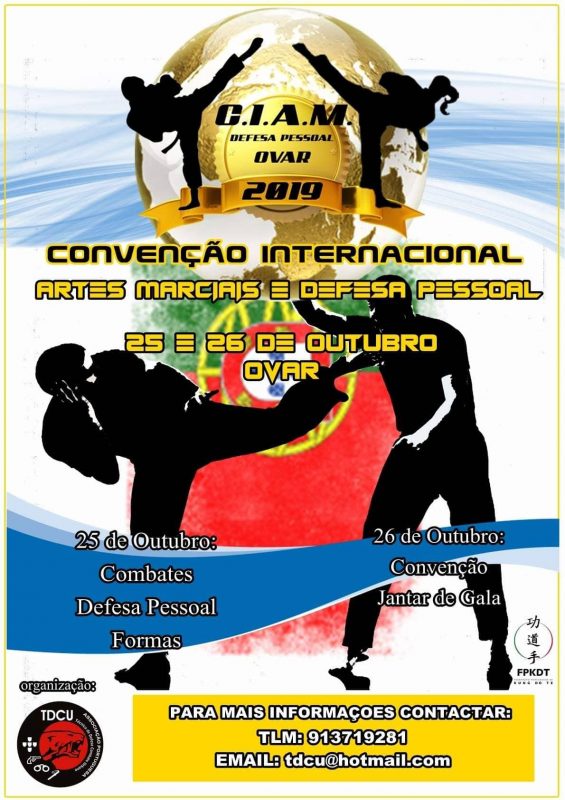 Vai já na quinta edição a Convenção Internacional de Artes Marciais e Defesa Pessoal que a Associação Portuguesa Técnica de Defesa Combate Urbano (APTDCU), com sede em Ovar, presidida pelo Mestre da modalidade João Botelho, realiza nos dias 25 e 26 de outubro, com assumido empenho e entusiasmo do seu núcleo local TDCU/Ovar como anfitrião na dinamização e organização deste evento desportivo, que continua a ter como palco, o Pavilhão Gimnodesportivo de Arada, que, segundo nos adiantou João Botelho, “tem vários países, já confirmados”, que participarão na “competição de Katas, Defesa Pessoal e várias outras modalidades”.