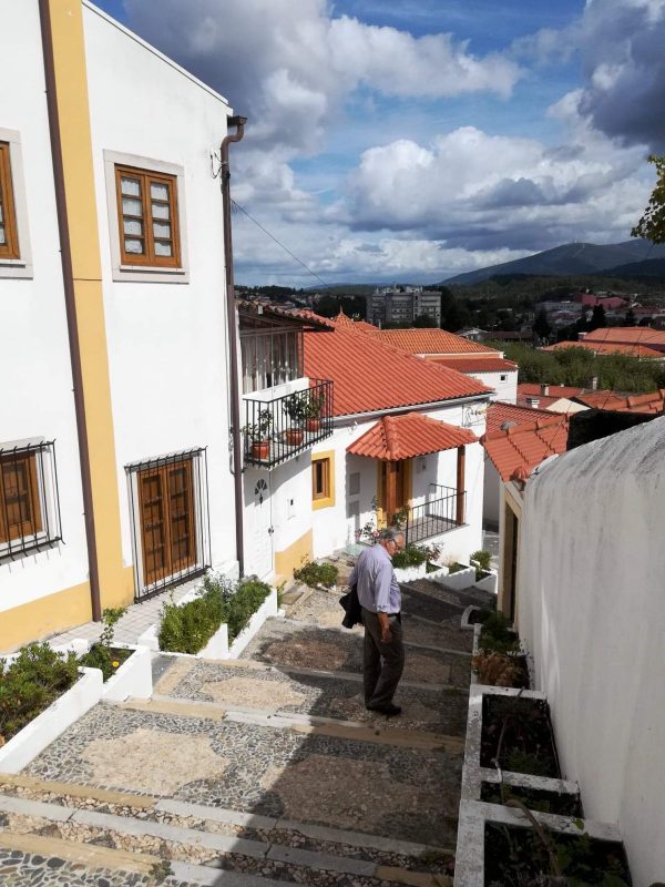 Até lá, tanto a subir como a descer, deparamos com a beleza das vielas e das suas casas pintadas de branco e de um amarelo-torrado, como que a encaixilha-las, muito a lembrar as residências tradicionais alentejanas.