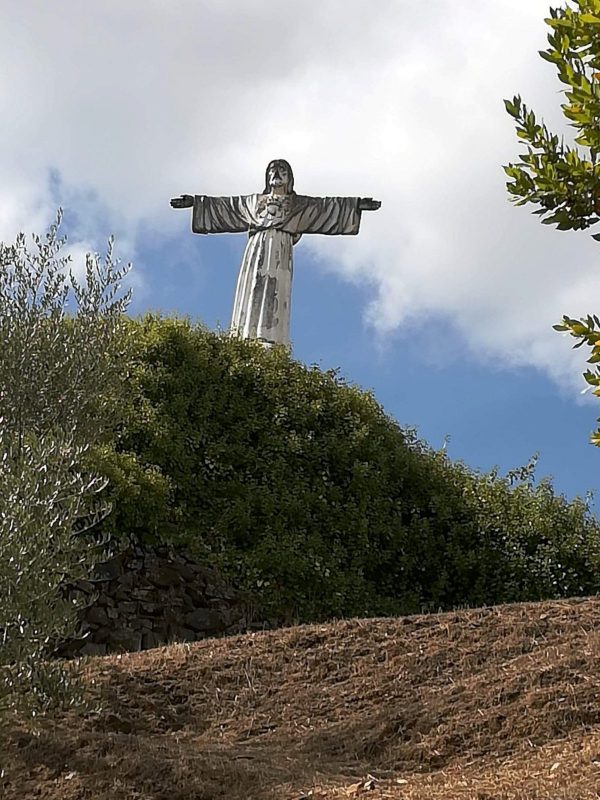 Antes de “dar ao dente” foi tirada a primeira impressão da vila que nos acolhia, banhada pelo rio Duela, ou Corvo. A Câmara Municipal logo ali no centro, com um jardim envolvente muito bonito, e lá mais em cima – viam-se altaneiras, a estátua de Cristo Rei e a Igreja Matriz, como que nos a convidar para uma subida (íngreme) pelas bonitas vielinhas do seu centro histórico. Mas, antes de lá chegarmos… chegou, então, a hora do almoço…