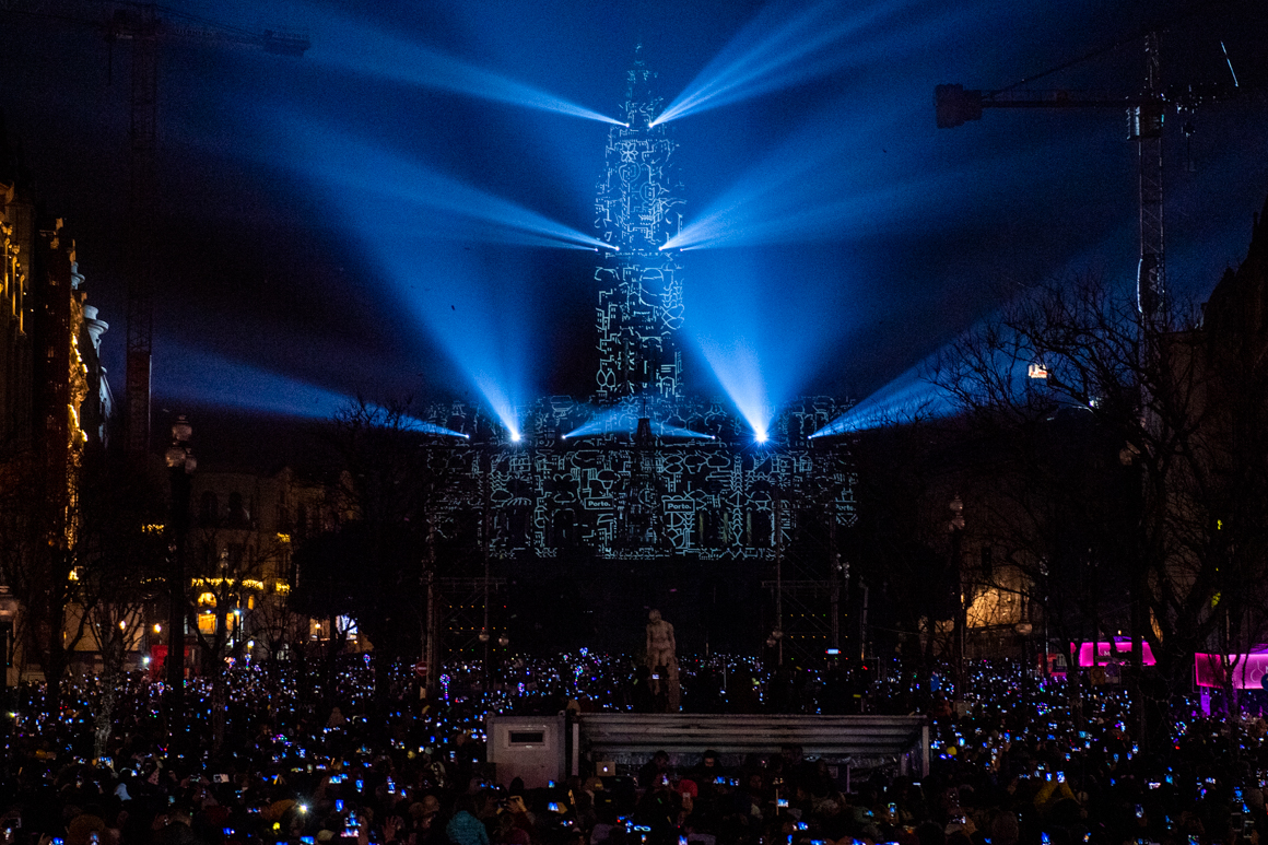 Alguns minutos antes de terminar o ano de 2019, o músico Tiago Nacarato parou de cantar e a multidão preparou-se para descobrir a surpresa que a cidade aguardava e que apareceu projetada no edifício da Câmara: uma criação em videomapping cuja beleza indescritível só se compreende assistindo ao vídeo.