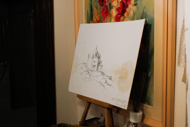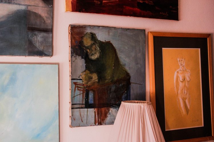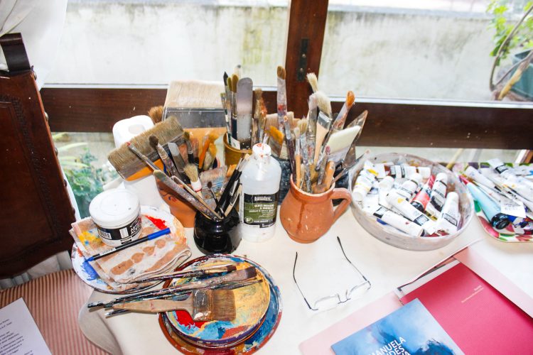 Tinha os meus filhos pequeninos, fui pintando, dei-lhes materiais para eles irem pintando, aqui, precisamente, neste espaço… a pintura esteve sempre presente! O mais velho entrou para Belas-Artes, é um sobredotado, foi chamado para Hong Kong, esteve em Tóquio, na Malásia, agora a China, a poucos quilómetros de Xangai, e vão chamá-lo para o Canadá, e casou-se com uma malaia – fui lá ao casamento – de quem gosto muito.”