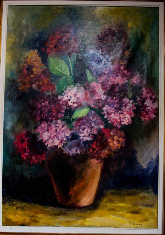 Este é o trabalho da minha primeira exposição, que foi dedicado a flores, porque as me ofereciam, tinha-as à minha frente e eis um óleo sobre tela. Este quadro é um marco, que não vendi, nem quero vender. É um marco do figurativo.
