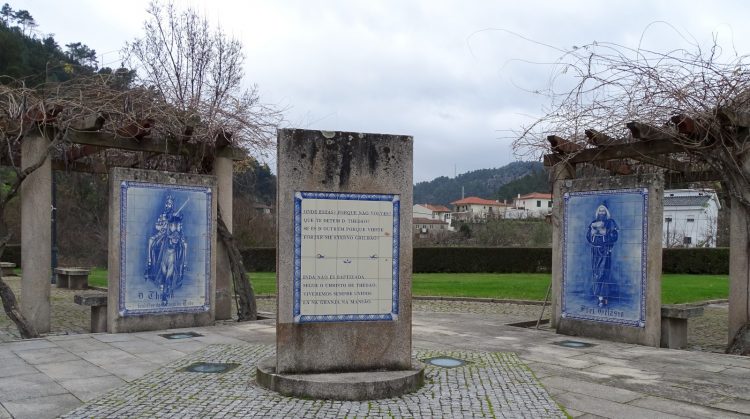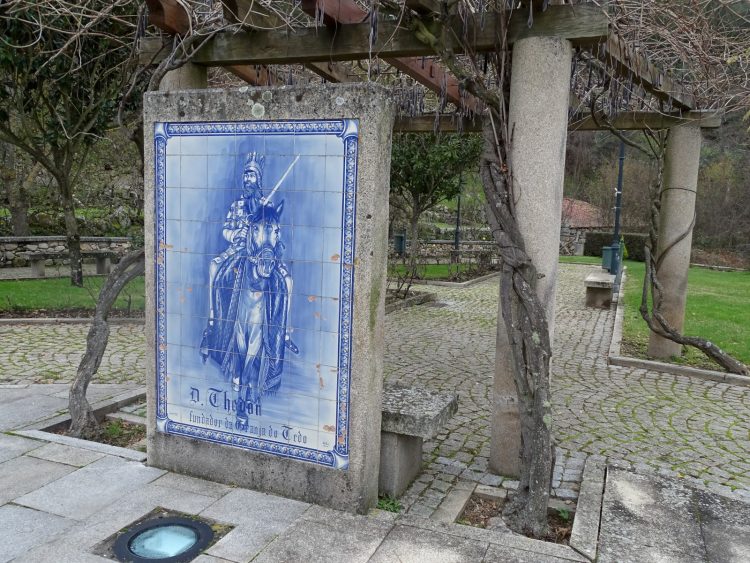 O que despertou o meu olhar foi o Jardim Histórico, junto do Tedo, cujo coração é dedicado à lenda local. O espaço está adornado de painéis de azulejo. E, em azul e branco, vão contando a história das origens da aldeia da sua dignidade e identidade que tem séculos de memória.