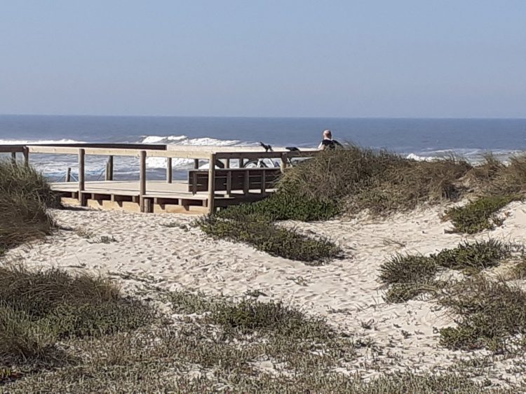 A paisagem natural com o mar como “pano” de fundo, e o tradicional vento de norte, ia refrescando os caminhantes que, quase em silêncio se tinham aventurado a não imaginar tão rápida evolução da necessidade de medidas mais restritivas. Nomeadamente das belezas de tal paisagem, que parecia refletir uma sensação estranha entre as pessoas que se cruzavam nos passadiços ou na Avenida Marginal e Avenida Central, com a múltipla oferta hoteleira e turística, que acaba por refletir o que vai acontecendo pelo planeta afetado por um surpreendente vírus, que provoca pânico, medo, desconfiança, afastamento social e felizmente em muitos bons exemplos, verdadeira solidariedade.