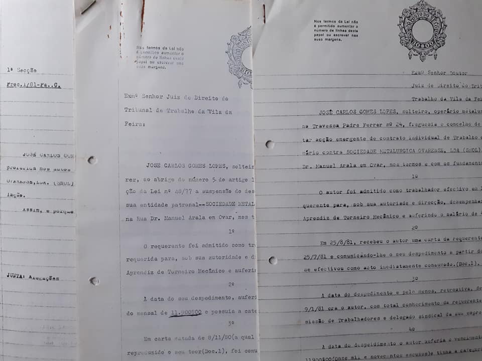 Á vitima do despedimento, que tinha sido admitido na Smol em 18/01/71, restou o caminho do recurso ao Tribunal de Trabalho, na então Vila da Feira, através de uma ação interposta pela dupla de advogados (Mário Brochado Coelho e Álvaro Vilas) a 29/09/81, em que era requerido a suspensão da decisão de despedimento por parte da entidade patronal, uma vez que a “decisão de despedimento foi tomada sem o recurso prévio a qualquer ação judicial interposta com esse fim, apesar de terem passado, quase dez meses desde o inicio do processo disciplinar até à decisão final (…)”, violava os n.º 1 e 2 do artigo 1.º da lei 68/79 no que se refere a dirigentes, delegados sindicais ou membros de comissões de trabalhadores, o que era o caso.