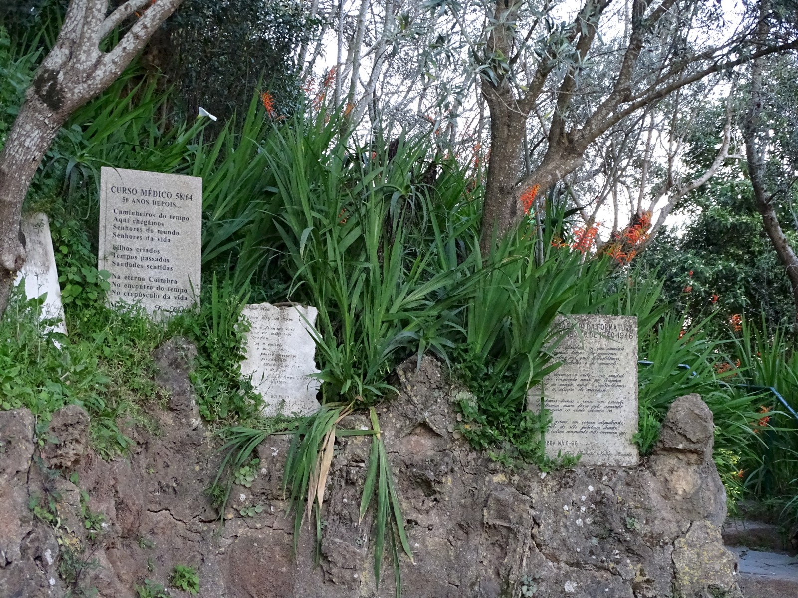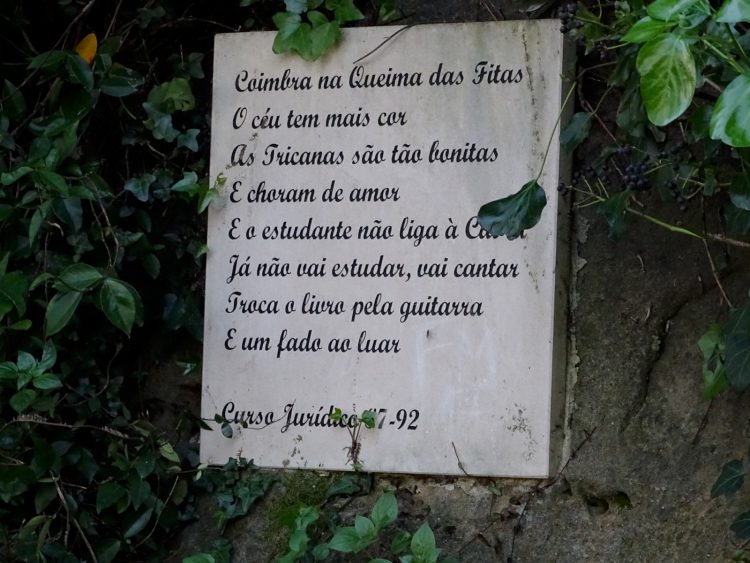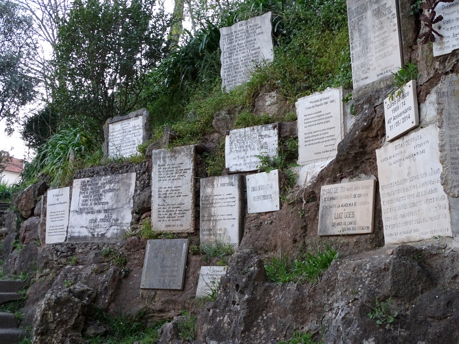A encosta veste-se de uma diversificada vegetação onde estão colocadas lápides preenchidas de narrativas poéticas comemorativas dos cursos. Um costume que passou a tradição naqueles cantos e recantos que a arte soube cuidar, o poeta soube rimar, que fadista soube cantar, e a cidade soube acarinhar.