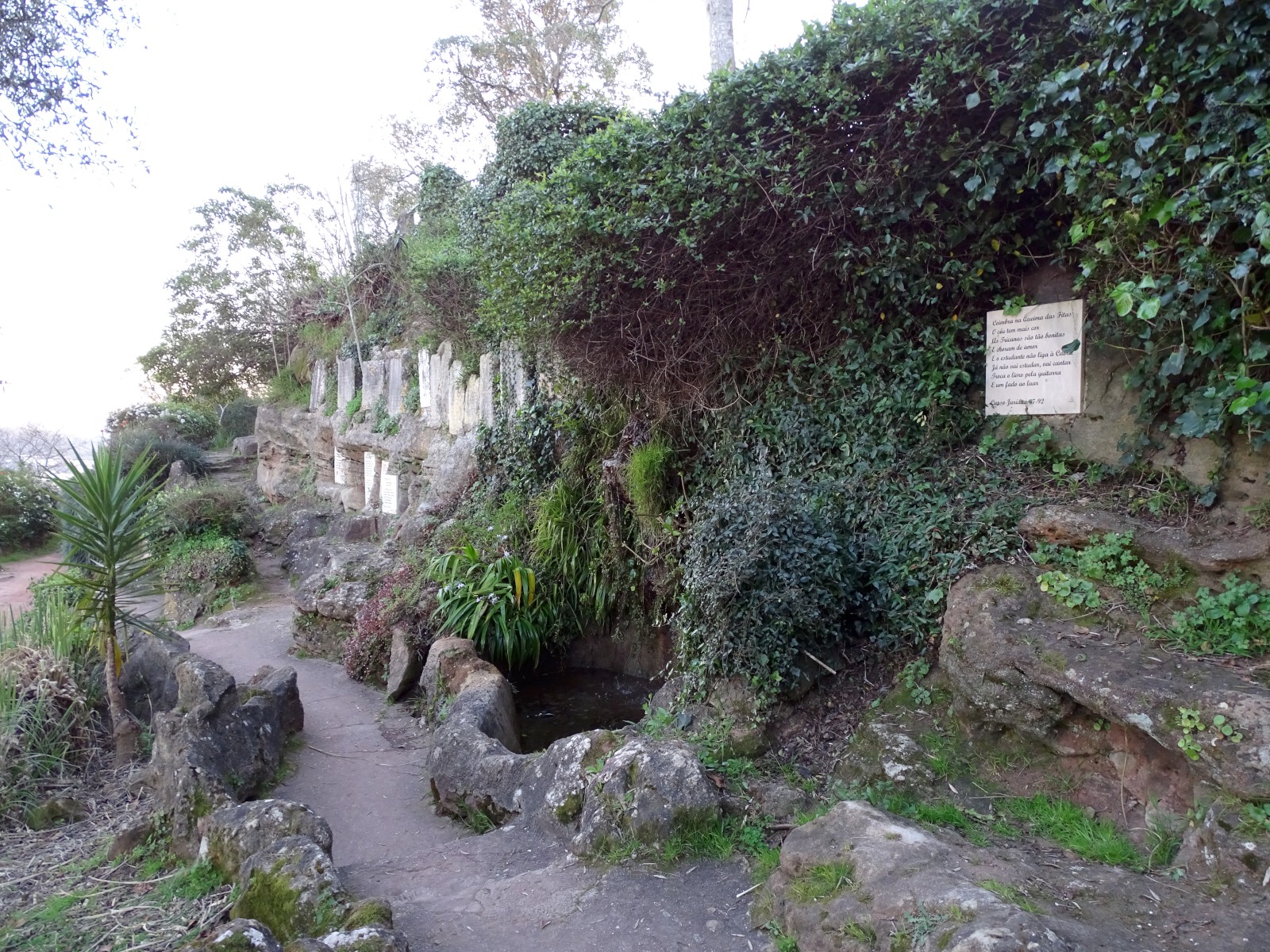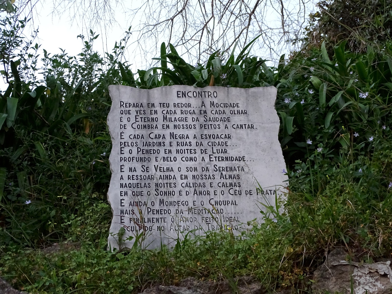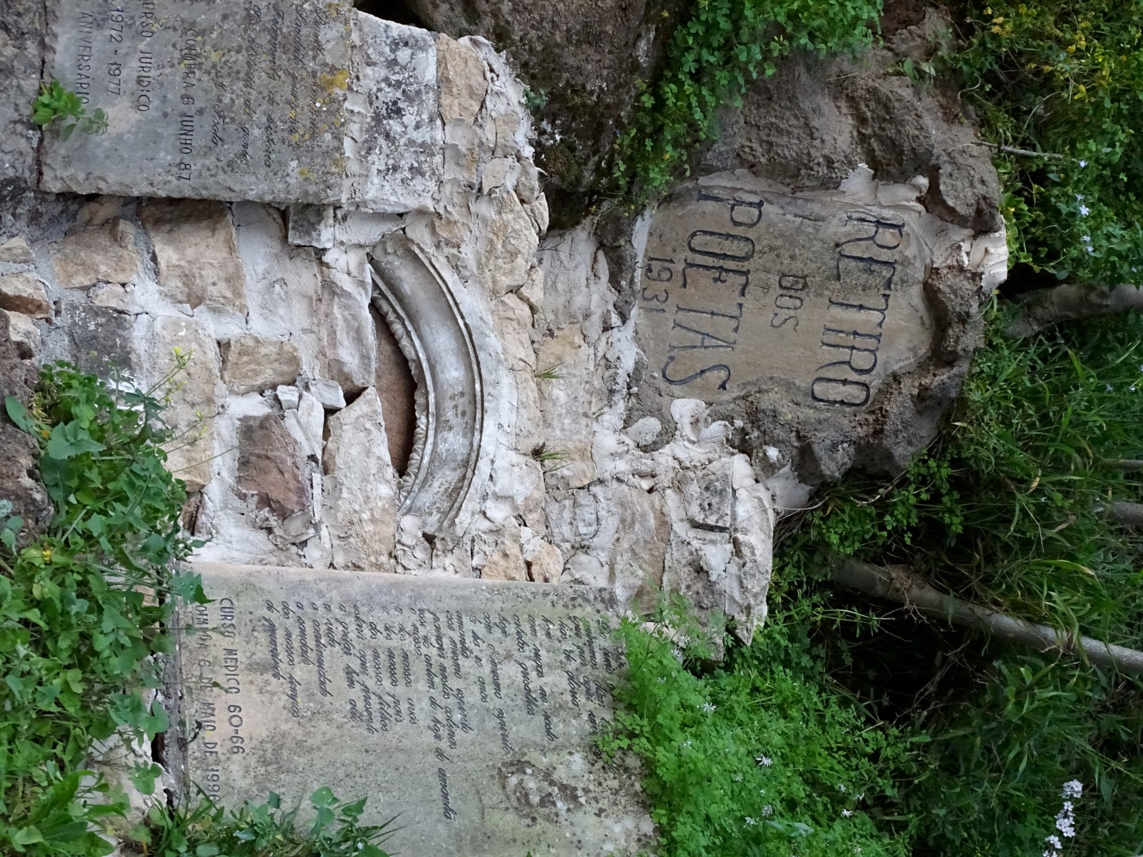 A encosta veste-se de uma diversificada vegetação onde estão colocadas lápides preenchidas de narrativas poéticas comemorativas dos cursos. Um costume que passou a tradição naqueles cantos e recantos que a arte soube cuidar, o poeta soube rimar, que fadista soube cantar, e a cidade soube acarinhar.