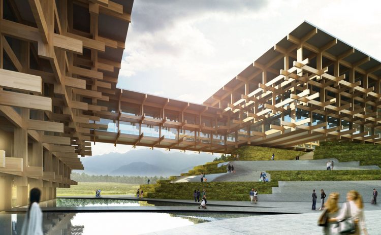 O arrojado projeto de arquitetura, feito em parceria com o gabinete Ooda, instalado em Matosinhos por jovens arquitetos oriundos da famosa escola de arquitetura do Porto, é da autoria do arquiteto japonês Kengo Kuma, conhecido pela assinatura do estádio que vai acolher os Jogos Olímpicos de Tóquio em 2021; por equipamentos culturais como o Suntory Museum of Art, também no Japão, o francês Besançon Art Center; ou pelo “spa” caribenho do Mandarin Oriental Dellis Cay.