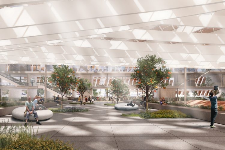 O projeto prevê uma grande cobertura que, num só gesto, une o antigo, que será preservado, e o novo edifício de remate, assim como a passagem por cima da VCI.