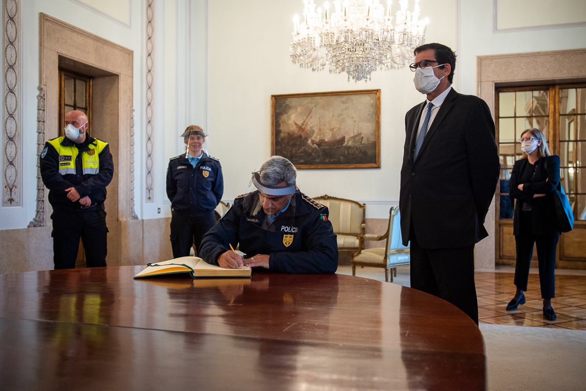 Numa das raras saídas do presidente da Câmara Municipal do Porto, esta manhã, Rui Moreira voltou à Sala Dona Maria, nos Paços do Concelho, para receber o diretor nacional da PSP, Magina da Silva, empossado em março, e a nova comandante metropolitana do Porto, Paula Peneda, da mesma força policial. Além de agradecer o “trabalho extraordinário” que as polícias têm feito nesta crise, Rui Moreira voltou a disponibilizar a colaboração do Município para ajudar as forças de segurança nas suas ações na cidade.