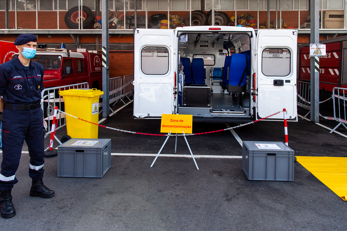 Igualmente fundamental tem sido o papel destes bombeiros no apoio ao Hospital de Campanha Porto., instalado pela Câmara do Porto no SuperBock Arena – Pavilhão Rosa Mota, assegurando transporte a doentes em alta ou na sua admissão. O comandante mostrou ao presidente da Câmara, que estava acompanhado pela vereadora do pelouro, Cristina Pimentel, e pelo chefe de gabinete, Nuno Santos, os dispositivos que possuem e a sua funcionalidade, graças ao investimento que o Município tem vindo a fazer nos últimos anos. E demonstrou também a segurança dos produtos que estão a usar, nomeadamente nas descontaminações, e que são certificados pelo i3S.