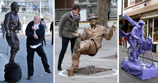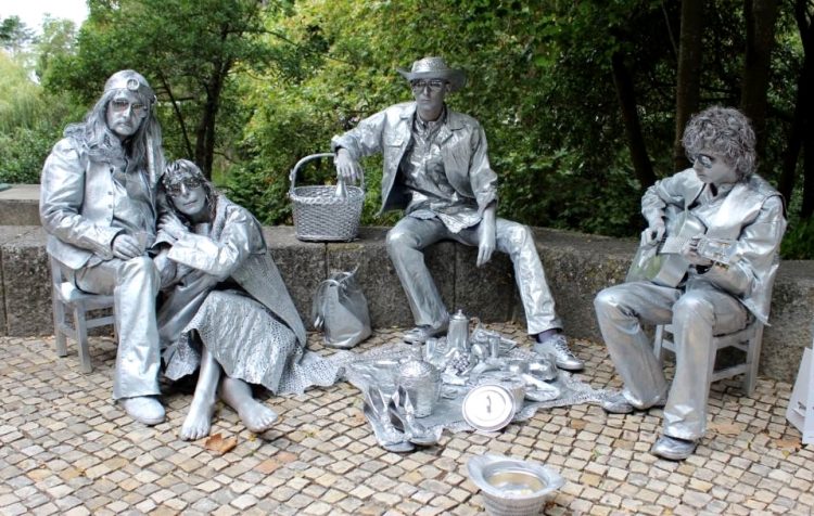 “Depois”, continua Maria Antónia Viana, “temos pessoas que não têm o olhar educado suficiente para perceberem o que é uma estátua com figurino, com cenário, e que tem de se construir todo um personagem. E há pessoas que pensam que estão a dar uma esmola, quando na verdade não é essa a ideia. É um contributo para a arte! Isso, sim!
