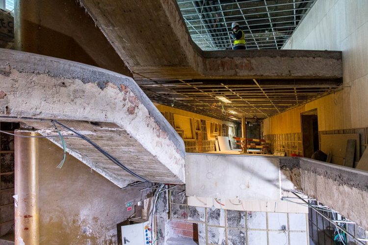 A obra também corre quando se olha para a betonagem de paredes, vigas e laje; para a demolição de elementos existentes; ou para o reforço das estruturas metálicas que aguardam os equipamentos de projeção e som. Entre os trabalhos executados acrescenta-se a estrutura criada para receber as cadeiras das salas de cinema, bem como a aplicação das caixilharias e dos rebocos da fachada.