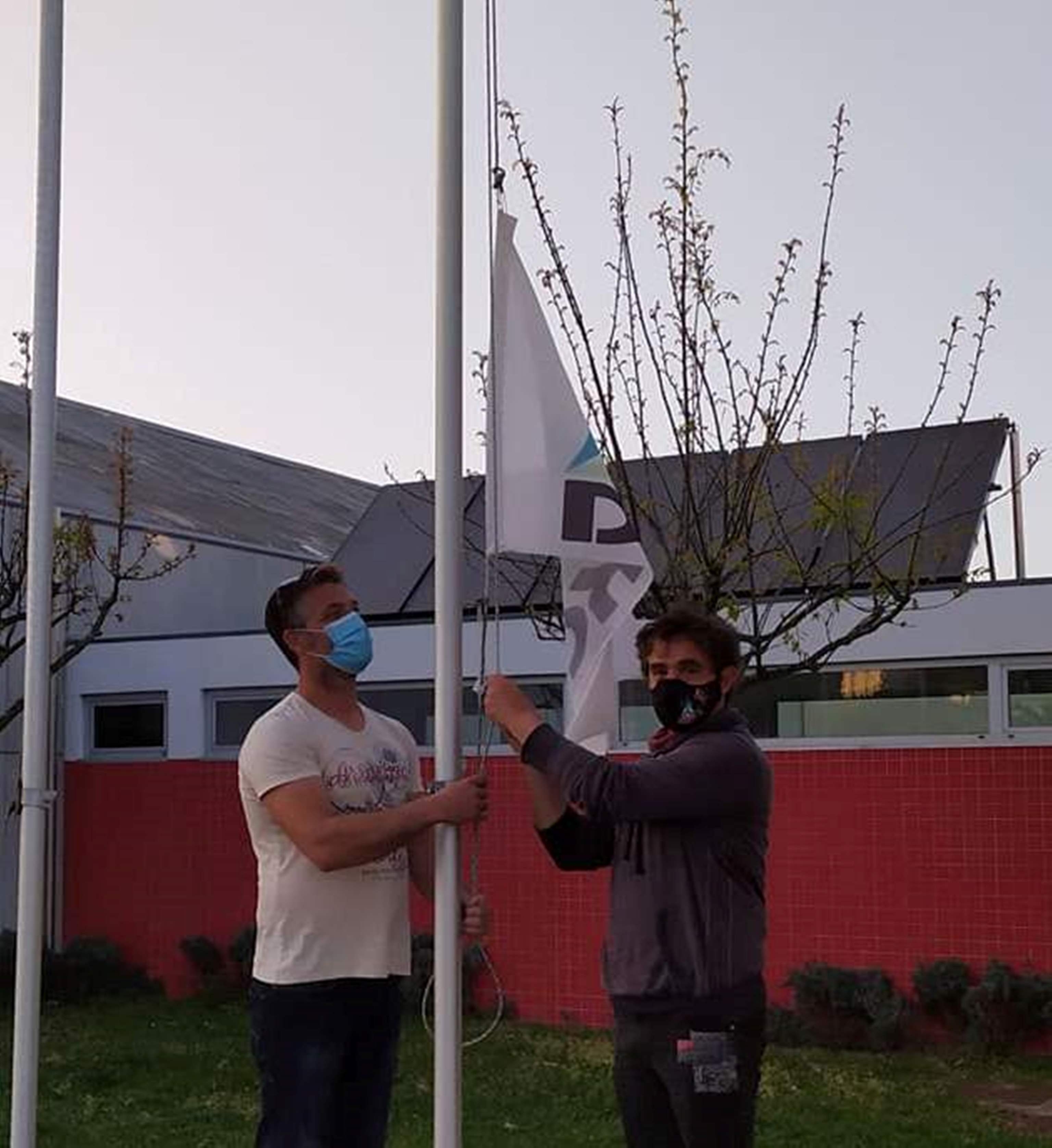 O hastear da bandeira pelos presidentes da Assembleia Geral e pelo Presidente da Direção da DKC de Viana, fez parte das comemorações do vigésimo sétimo aniversário deste clube vianense. Também os atletas fizeram o respetivo treino de água prestando o seu tributo.