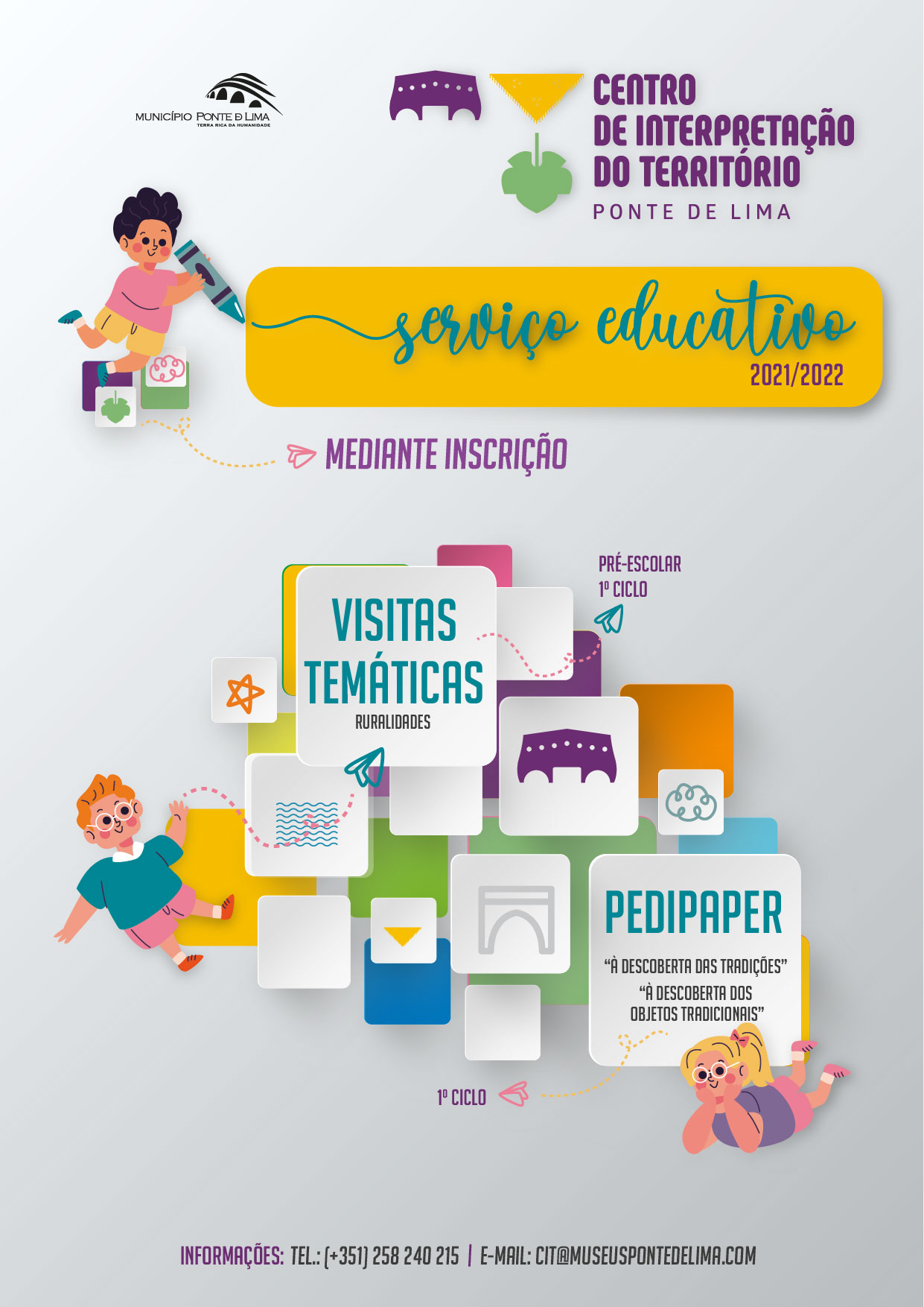 O Centro de Interpretação do Território (CIT) de Ponte de Lima, enquanto espaço cultural e baluarte da identidade coletiva da região que procura promover e preservar, propõe para o ano letivo de 2021/2022 a dinamização de Visitas Temáticas, inteiramente dedicadas ao mundo rural e aos usos e costumes do território limarense, e a organização de divertidos Pedipaper, inspirados nas mais emblemáticas tradições do concelho, assim como nos objetos que integram a exposição permanente do CIT focada em oito temáticas fundamentais – a lavoura, a produção do linho, do pão e do vinho, o pastoreio, a relação homem/animal, as festividades e a devoção.