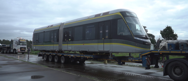 Após um longo percurso, que envolveu viagens por terra e mar, desde a China até Matosinhos, passando pelo porto de Tarragona, na Catalunha, e mesmo em cima do Natal, o primeiro dos 18 novos veículos CT do Metro do Porto deu finalmente entrada no Parque de Material e Oficinas (PMO), em Guifões.