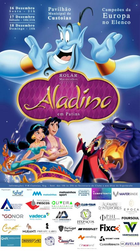 Propício a todas as idades, o espetáculo ‘Aladino em Patins’ será interpretado por mais de 100 atletas do clube, incluindo vários campeões e medalhados em campeonatos europeus e mundiais, contando com uma ambiciosa produção cénica, coreográfica e multimédia. Até domingo, serão apresentadas um total de seis sessões.