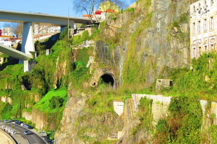 A desativada Linha da Alfândega e um dos seus túneis, na escarpa das Fontainhas – Foto: Pedro. N. Silva