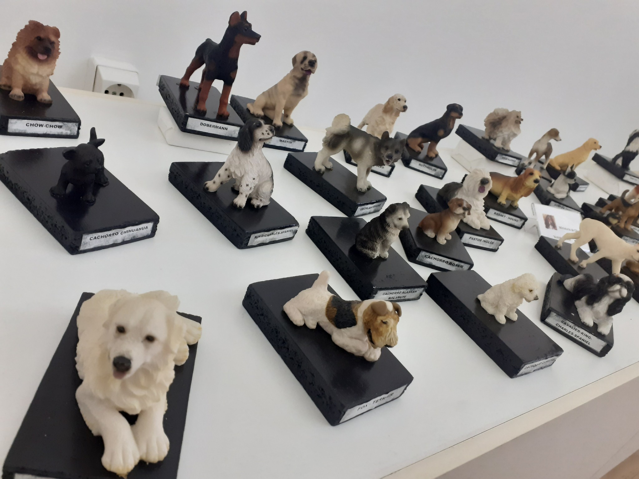 Entre as inúmeras raças caninas expostas em setores por diferentes matérias de que são produzidas as peças das miniaturas, destacam-se o Dogue Alemão, Dobermann, Spitz Alemão, Sehnauzer Médio ou o Collie.