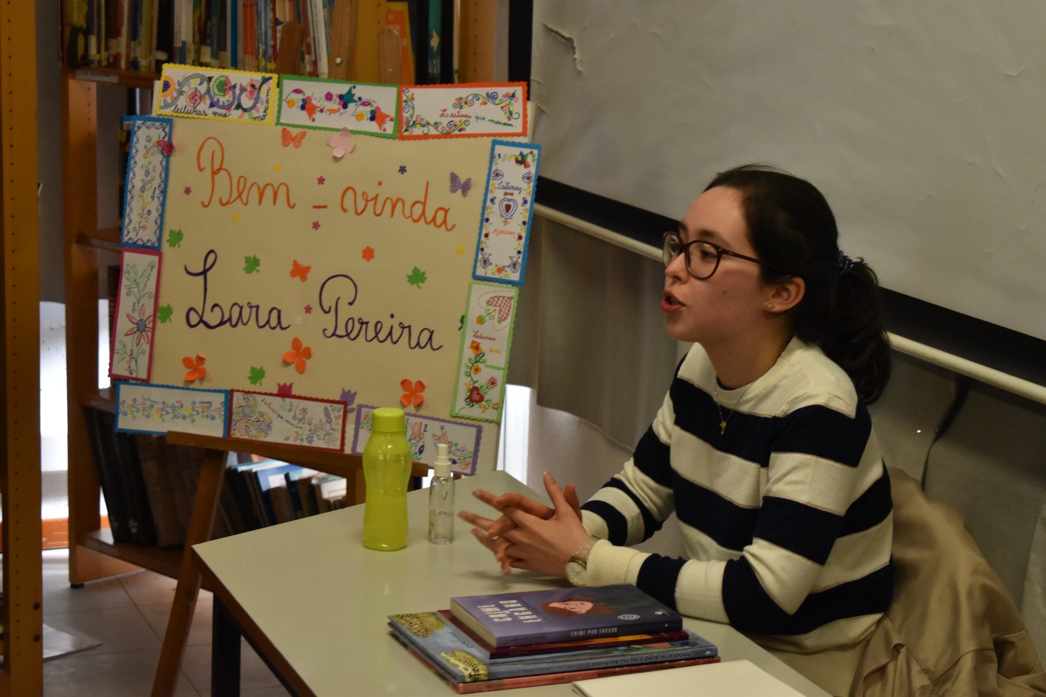 Foi assim que da leitura das histórias ‘As Aventuras Matemáticas do Pinóquio’, e da importância do trabalho em articulação entre as várias disciplinas, que estes livros despertam, que se proporcionou aos alunos das respetivas turmas, uma animada conversa com a coautora Lara Pinto Pereira, que partilhou o seu gosto pela leitura e pela escrita, que iniciou com apenas 12 anos de idade, publicando em 2019 o seu primeiro livro, ‘Nunca Desistas dos Teus Sonhos’, um lema que a jovem escritora repete nestas sessões para motivar os mais novos a gostarem dos livros e para apresentar os vários títulos publicados, que inclui ainda ‘Crime Por Engano’, obra que também está a ser devorada pela leitura que desperta em entre alunos e adultos neste contato com a escritora na escola.