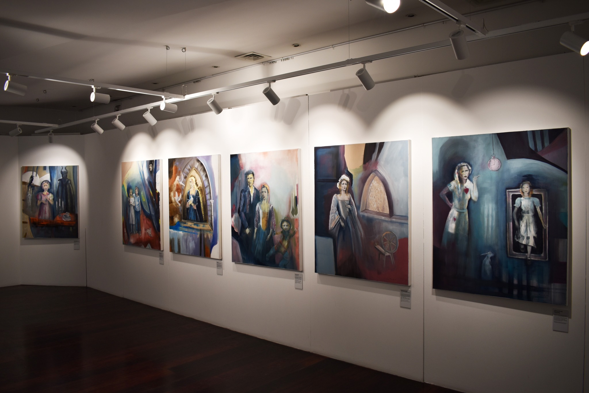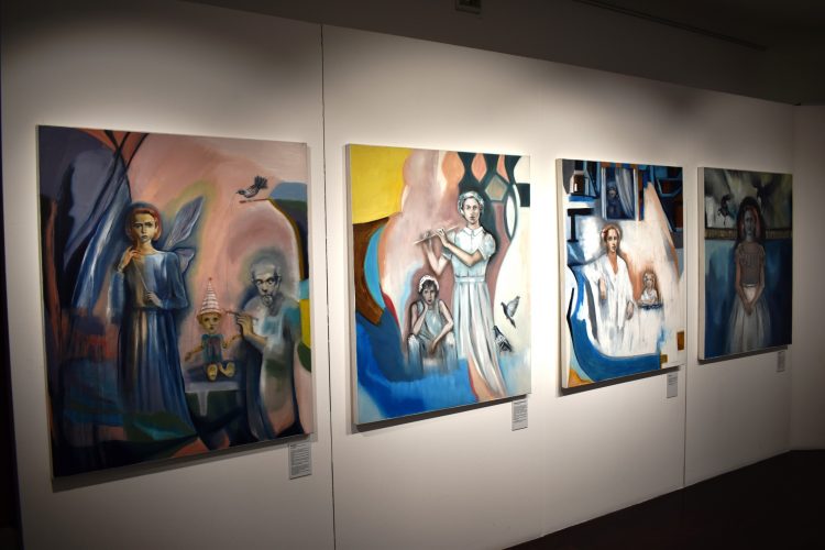 Por entre as obras destas ‘Histórias de encantar’, cuja exposição foi inaugurada no dia 10 de fevereiro na Biblioteca Municipal de Ovar e vai estar disponível até 22 de abril, é possível aos visitantes recuarem também às suas memórias, e encontrarem nas pinturas de Gina Marrinhas, referências de livros de histórias que tenham marcado a sua infância, como: ‘A Bela e o Monstro’, ‘Branca de Neve e os Sete Anões’, ‘A Polegarzinho’, ‘A Menina do Capuchinho Vermelho’, ‘Hansel e Gretel’, ‘Rapunzel’, ‘O Gato das Botas’, ‘A Bela Adormecida, ‘Alice no País das Maravilhas’, ‘Pinóquio’, ‘A Flauta do Último Adeus’, ‘George’, ‘A Gata Borralheira (Cinderela)’, ou ‘O Principezinho’ de Antoine de Saint-Exupéry.