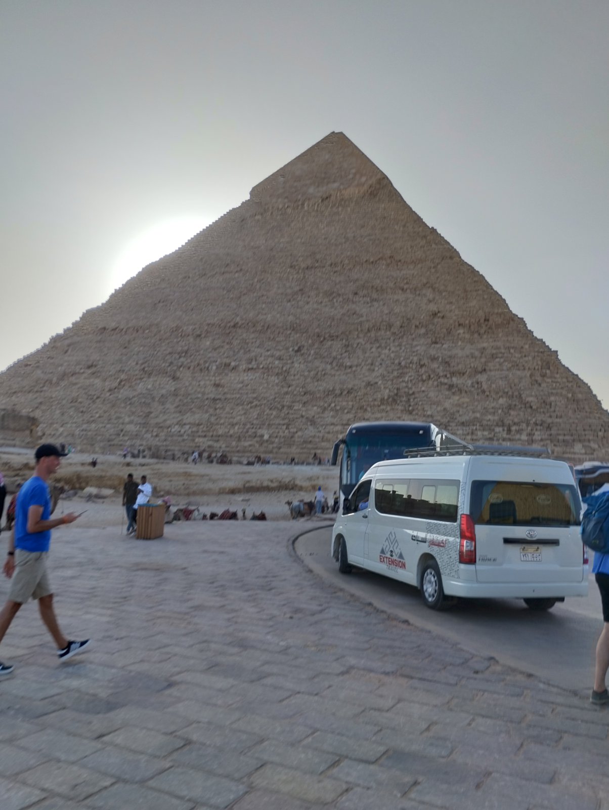 Passámos pela imigração sem tropeços, o problema foi depois… Um senhor sem uniforme, sem crachá, e sem uma mesa ou algo que o fizesse parecer oficial, pediu os nossos passaportes e anotou dados em árabe num pedaço de papel, fazendo algumas perguntas. Fiquei muito incomodado e pedi sua identificação. Ele disse ser da polícia turística e apresentou um cartão magnético, que muito bem poderia ser original ou falso.