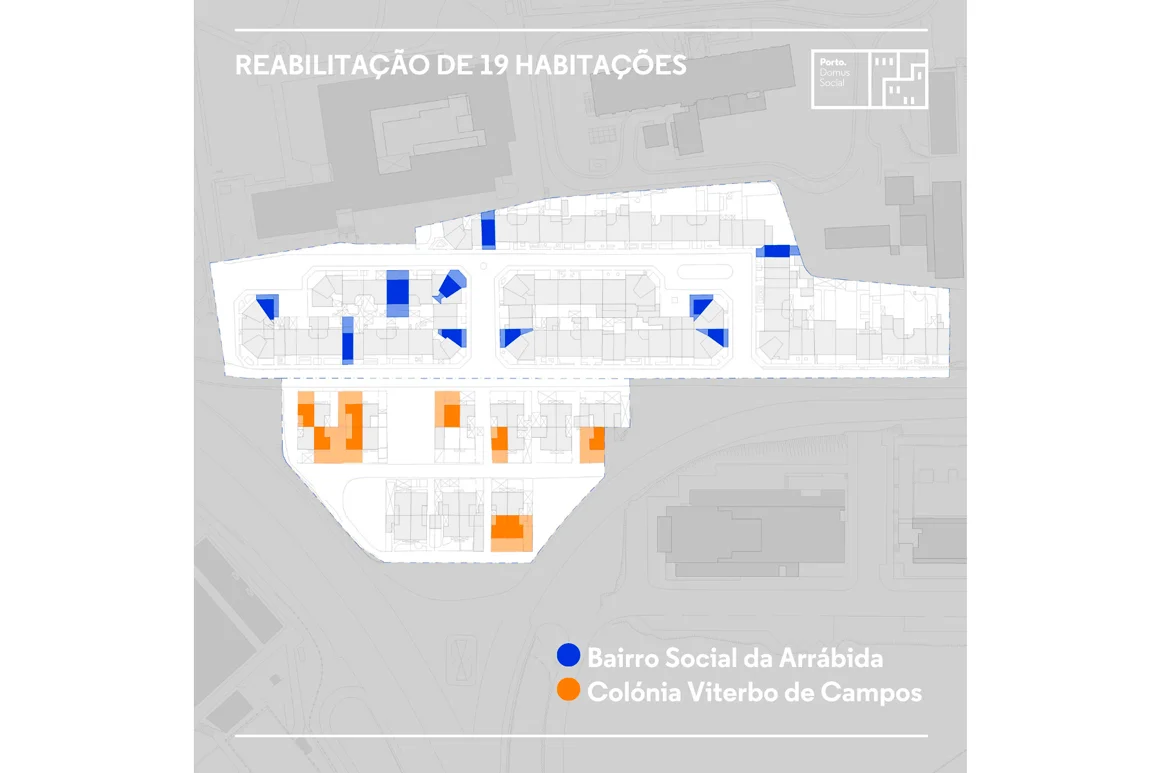 A Câmara do Porto vai reabilitar um conjunto de 19 casas devolutas no Bairro Social da Arrábida e na Colónia Viterbo de Campos. A ‘Domus Social’, empresa municipal responsável pelo projeto de requalificação, prevê que o investimento municipal fique perto dos três milhões de euros.