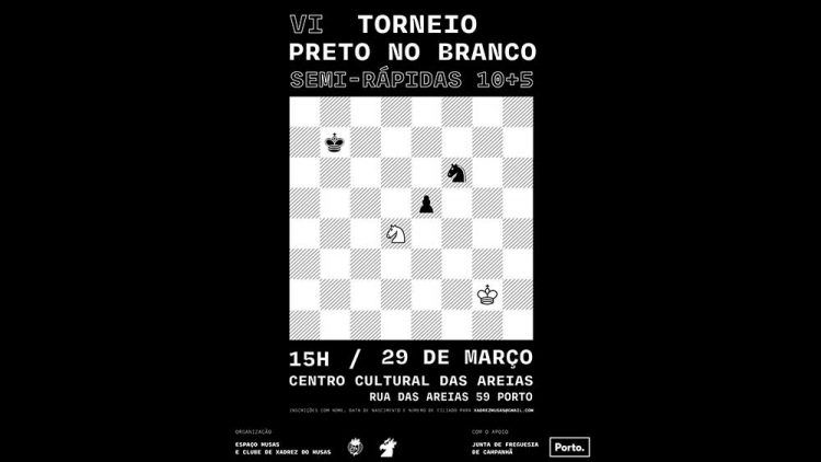 O Sport Musas e Benfica organiza, no domingo 29 de março, pelas 15h00, o VI Torneio de Xadrez “Preto no Branco”, que terá lugar no…